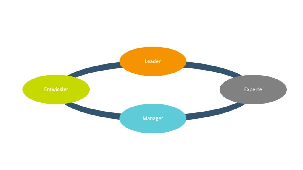 In der Praxis arbeite ich gerne mit einem Modell, das folgende vier Typen von Führungsrollen unterscheidet: