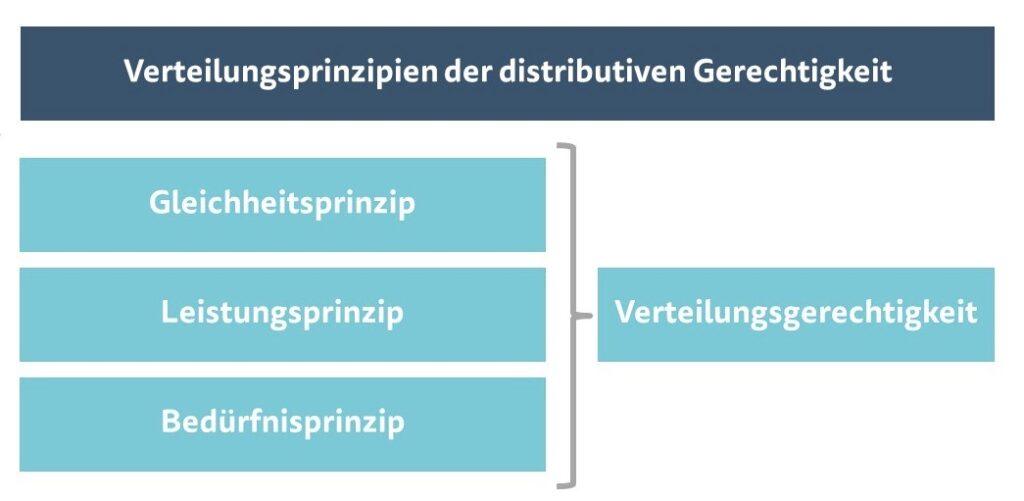 Die Verteilungsgerechtigkeit umfasst drei unterschiedliche Prinzipien: das Gleichheits‑, Leistungs- und Bedürfnisprinzip.